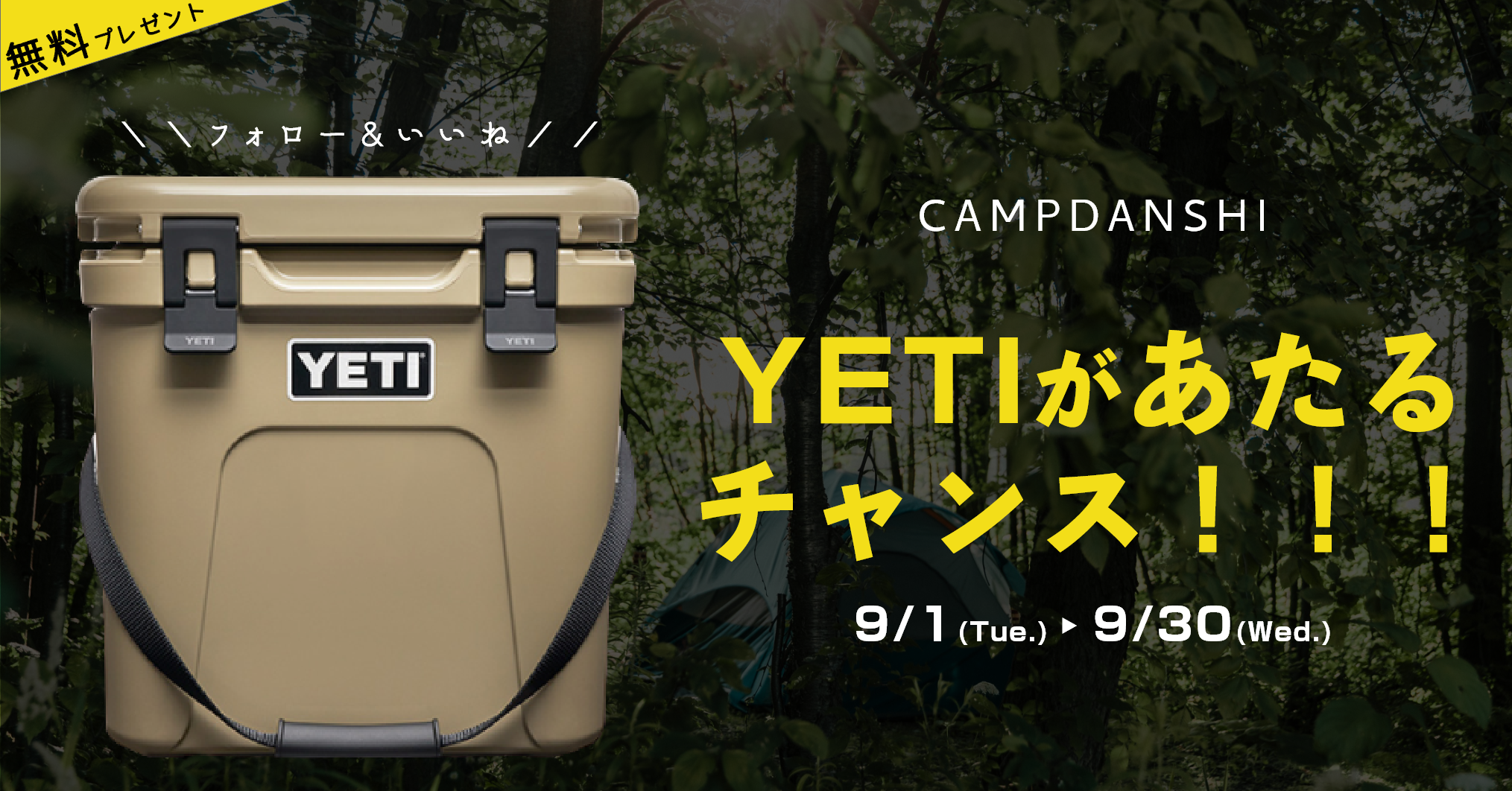 2020年9月1日からキャンプ男子では、皆様のキャンプシーンをさらに盛り上げるアイテム「YETY」クーラーボックスを、感謝の気持ちを込めてプレゼントキャンペーンを開催します。